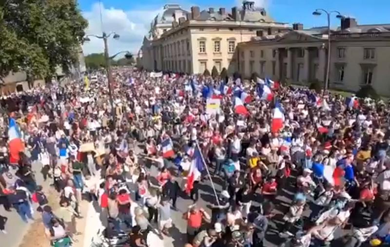 NOW – Renewed large protests in Paris and many other cities in France against vaccine passports and mandatory vaccination.@disclosetv pic.twitter.com/FGEUu7Te6o