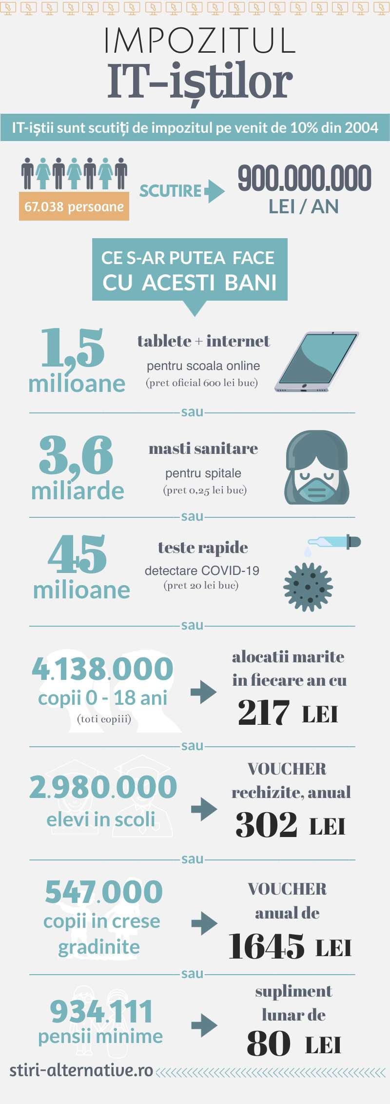 Poate sunteți curioși să aflați ce putem face cu suma de 900 milioane lei (anual) care s-ar colecta de la IT – iști dacă și -ar plăti impozitul pe venit: